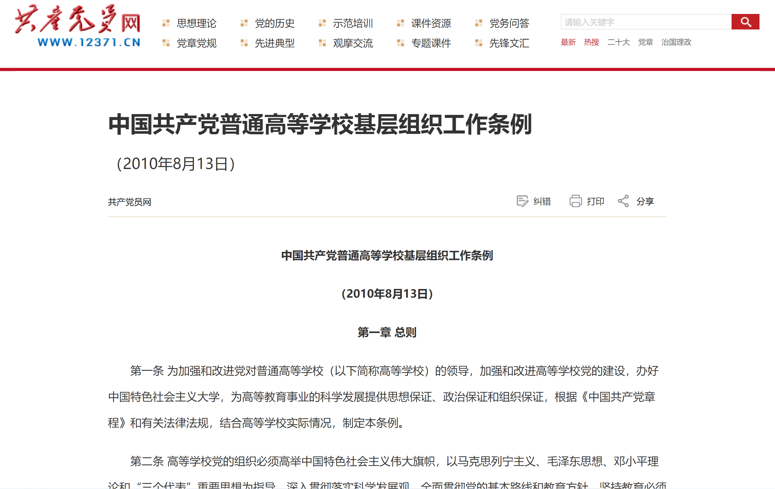 中国共产党普通高等学校基层组织工作条例_共产党员网 (12371.cn)
