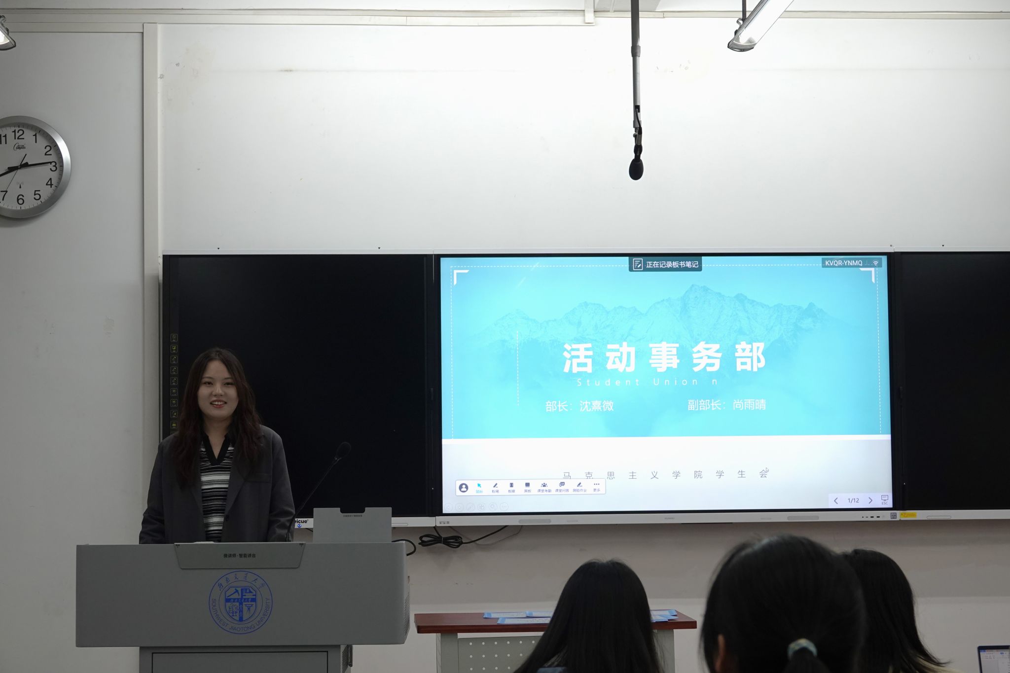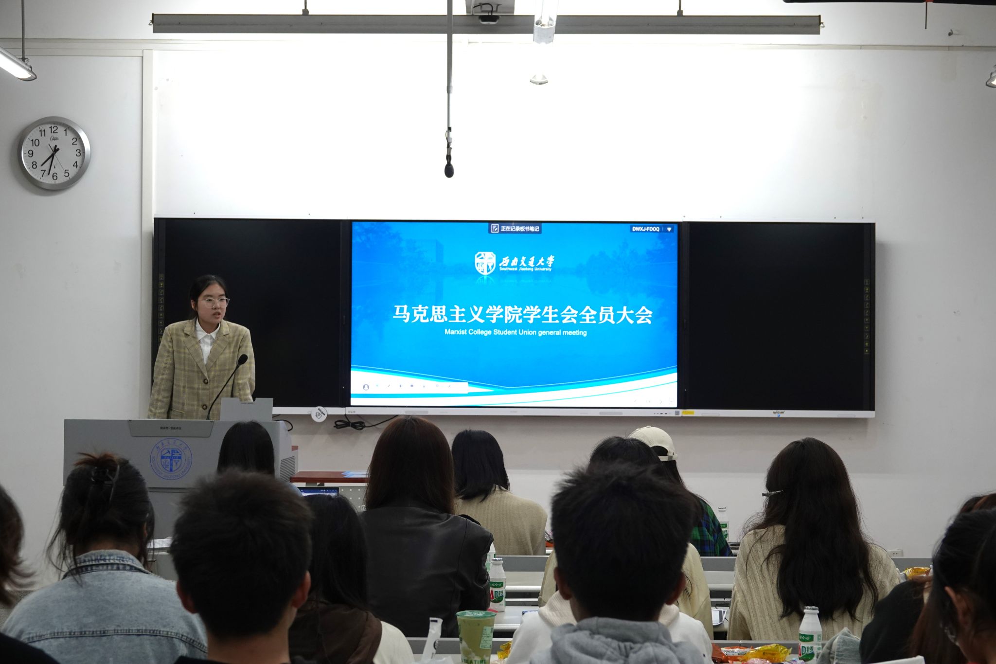 学生会在X8537召开第一次学生会全员大会。学生会指导老师杜晓林出席本次会议,学生会全体成员共同参与,会议由学生会综合权益部部长潘天忆主持。