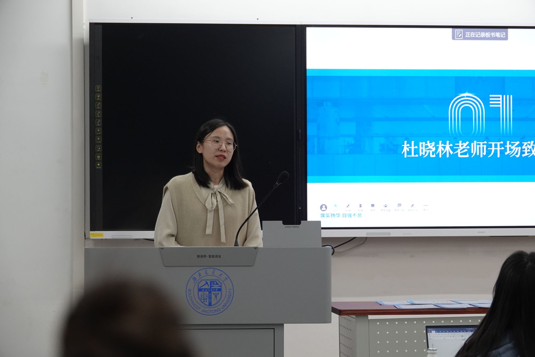 首先,杜晓林老师为大会寄语。在对新成员表示欢迎后,杜老师以学生会的良好成绩勉励新成员奋发向上。杜老师指出,在日常学习生活中同学们的言行要符合一名马院人的要求,要不断提升自己的政治素养和道德素养,要在参与活动的过程中学会做人、学会做事,要正确处理好学习与工作的关系。此外,在心态上,杜老师叮嘱新成员要端正态度,认真踏实对待工作,积极主动融入集体,主动思考,及时反馈,注意自己形象与素质,充分发挥榜样示范引领作用,争做优秀的学生干部。