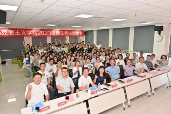 院长邱海平、党委书记廖军、执行院长田永秀等领导出席会议,新生班导师、辅导员以及全体2023级本科新生参与见面会。