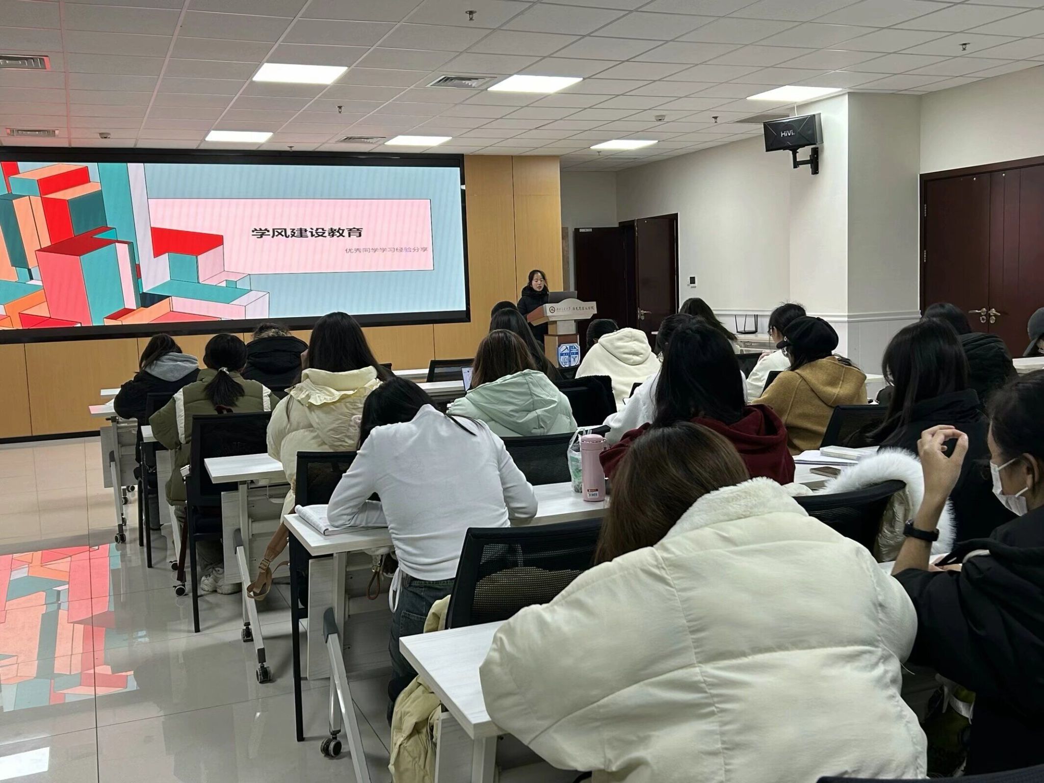 为加强班风学风建设,营造良好的班级学习氛围,让同学们更高效地迎接期末考试,思政2023级本科生1214日在X31325开展班风学风建设暨诚信考试主题班会。此次班会邀请到了国奖获得者潘天忆和2021级班长李凯进行分享。