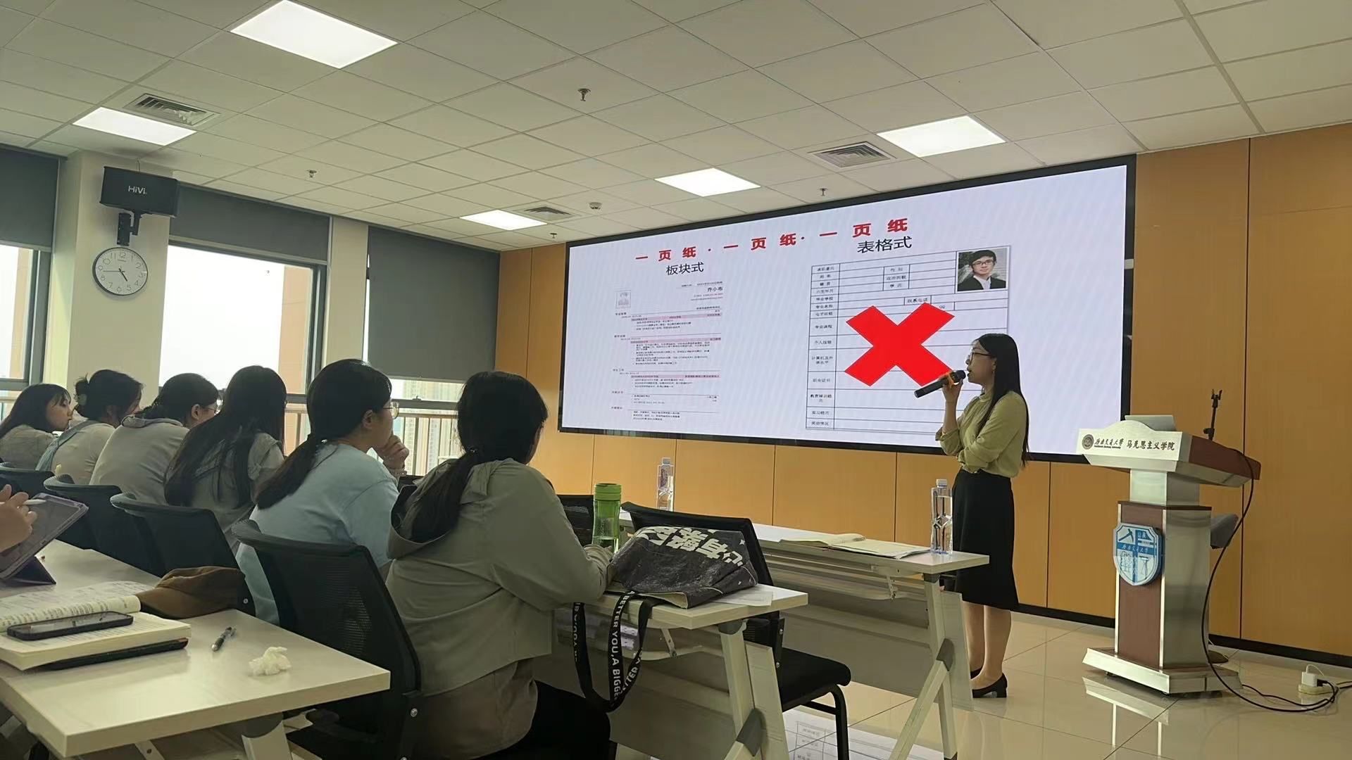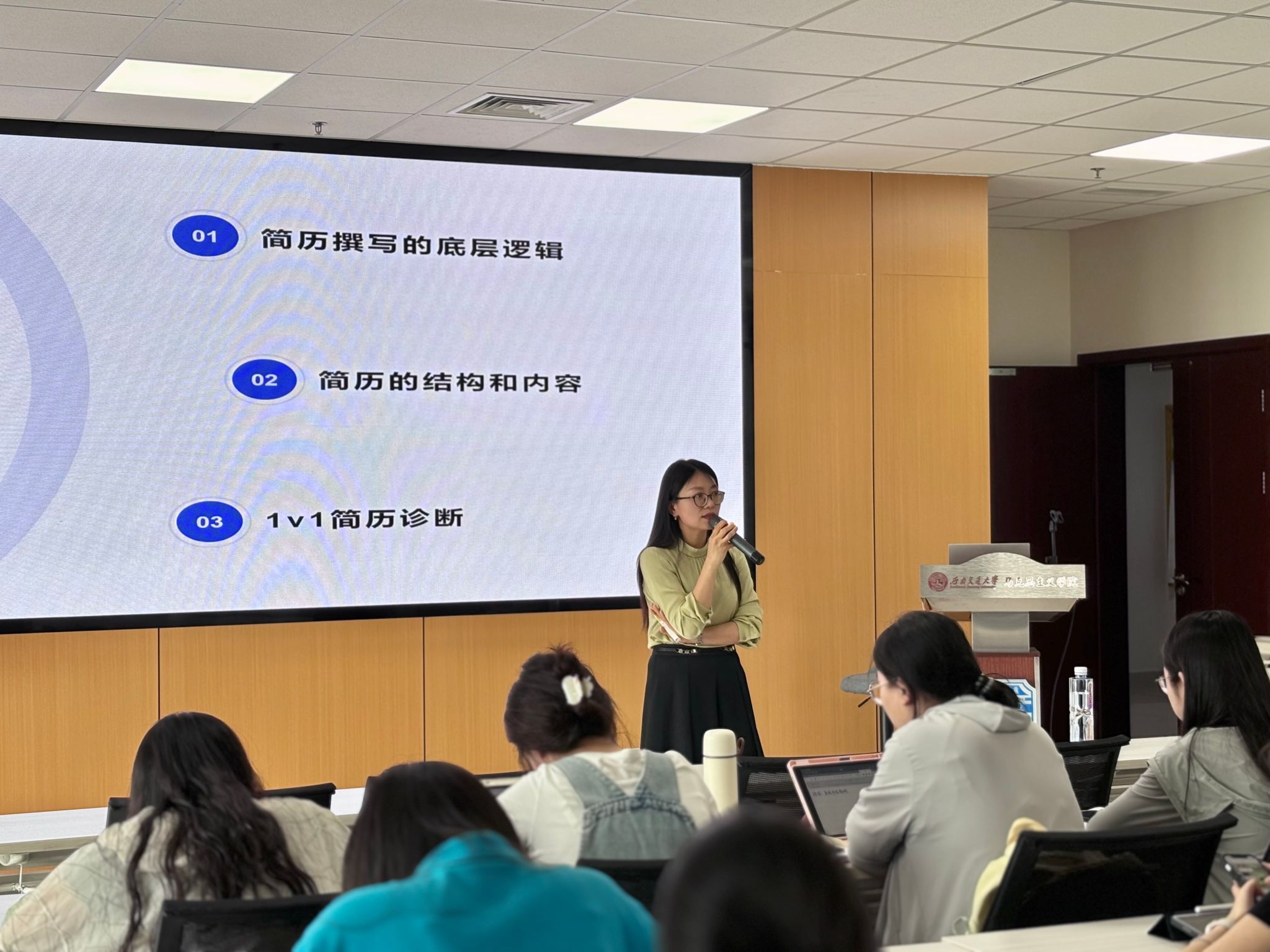 讲座最后,陈曦轶与现场同学进行了互动交流,耐心解答了同学们的疑问,并与邓秀芸、朱方方、杨雪莲针对同学们的简历进行了1V1现场诊断。同学们纷纷表示,通过此次讲座,他们深刻认识到了简历撰写的重要性,也掌握了一些实用的技巧和方法,对今后的求职之路充满了信心。