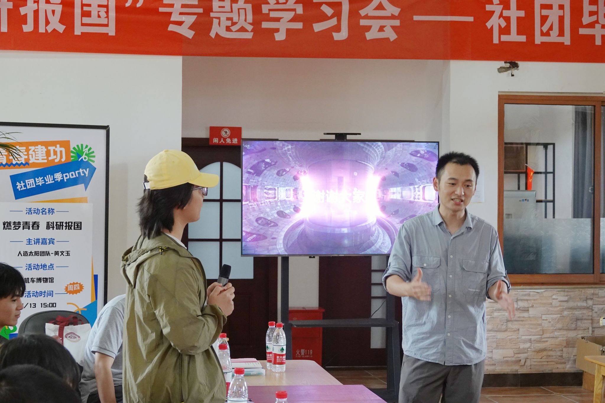 于6月13日下午在机车博物园内举办社团毕业季Party之“燃梦青春 科研报国”专题讲座。本次讲座邀请到核工业西南物理研究院助理研究员、“人造太阳”博士科普团科普讲解员黄文玉博士作为主讲人。讲座由瓜子tv