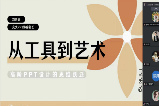 5月24日,第三场培训讲座邀请了智慧城市与交通学院新媒体中心美工设计部部长刘昕语,他为同学们PPT设计技能做了培训。这次培训以“技术操作到设计思维”的进阶为核心,深度解析如何打造兼具逻辑性与视觉冲击力的PPT作品。从破除“PPT是Word搬家”“模板依赖”等常见误区入手,引入高阶模型,帮助学员构建场景化设计思维。内容涵盖主流工具矩阵、设计美学法则以及动态表达技巧等。更将揭秘AI工具与人类创意的协作新范式,通过工具实测,展示如何规避AI同质化,实现“AI处理数据+人工设计表达”的高效工作流。