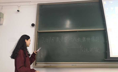 11月6日, 2018-1团支部和2018-2团支部在7301教室举办了“学习宣传共青团的十八大精神”团日活动。本次活动由2018-2团支部书记兰若彤主持。