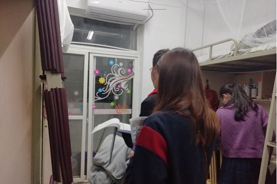 赵老师和学生干部们仔细检查了本科生宿舍的安全卫生状况,提醒大家继续注意宿舍安全,保持宿舍整洁。