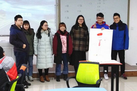 随后,同学们在纸上画出自己想象中大学毕业后的自己,并让各组在完成后上台进行展示。