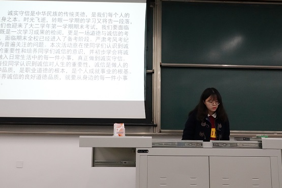 诚信考试教育会在12月3日19时于2218举行。刘晓玲、景星维、王迎迎、赵晨四位老师和全院本科生参加会议。