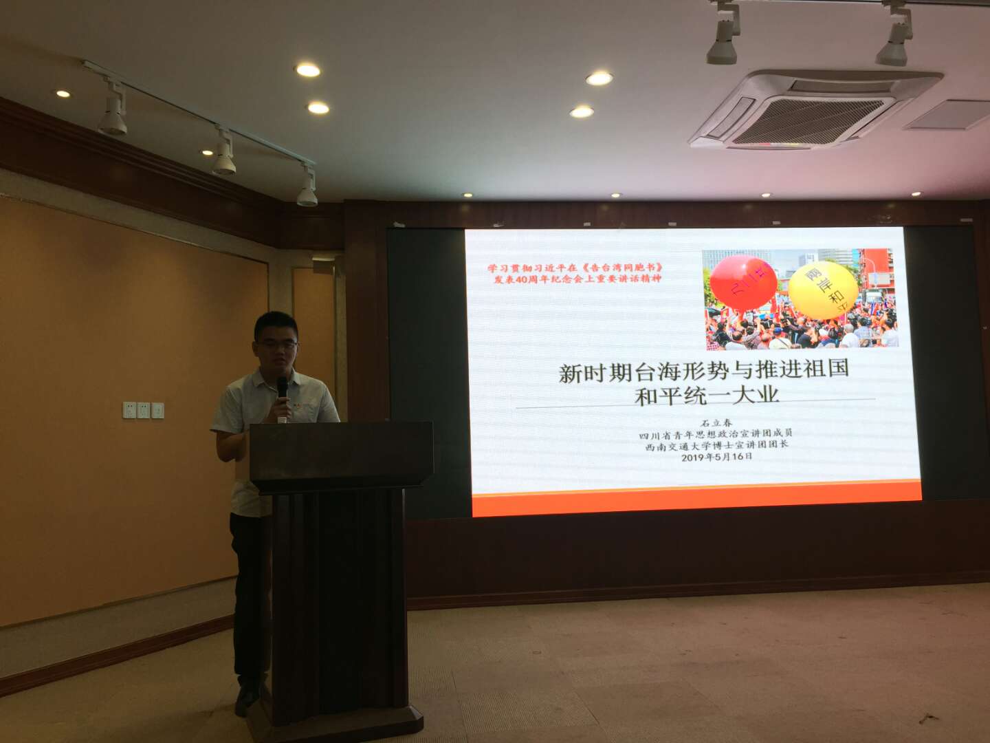 2015级博士研究生石立春,为岳池县青年干部,开展以“传承弘扬五四精神 以奋斗与担当书写青春诗行”为题的政治宣讲。