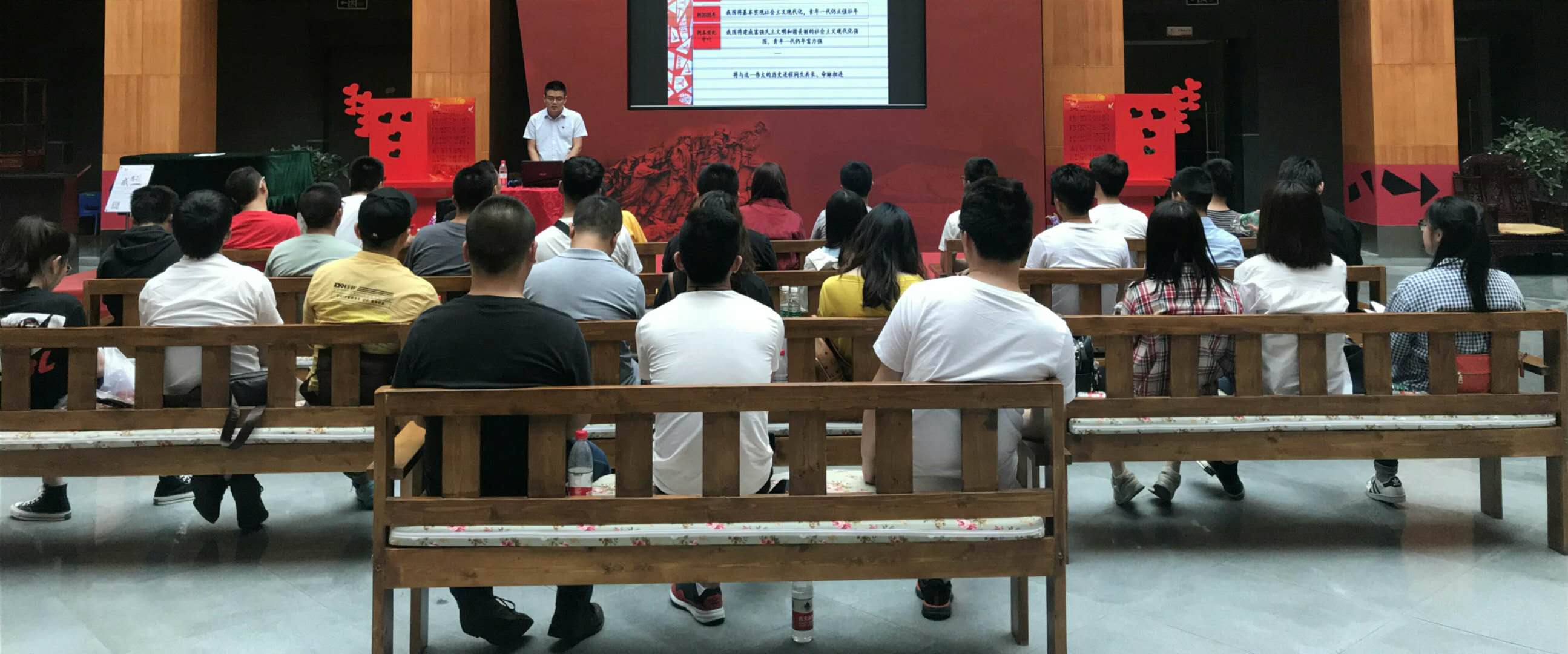 2015级博士研究生石立春,为参加四川大学半月谈“同心圆”的少数民族同学,开展以“感悟五四运动的爱国主义情怀”为题的政治宣讲。