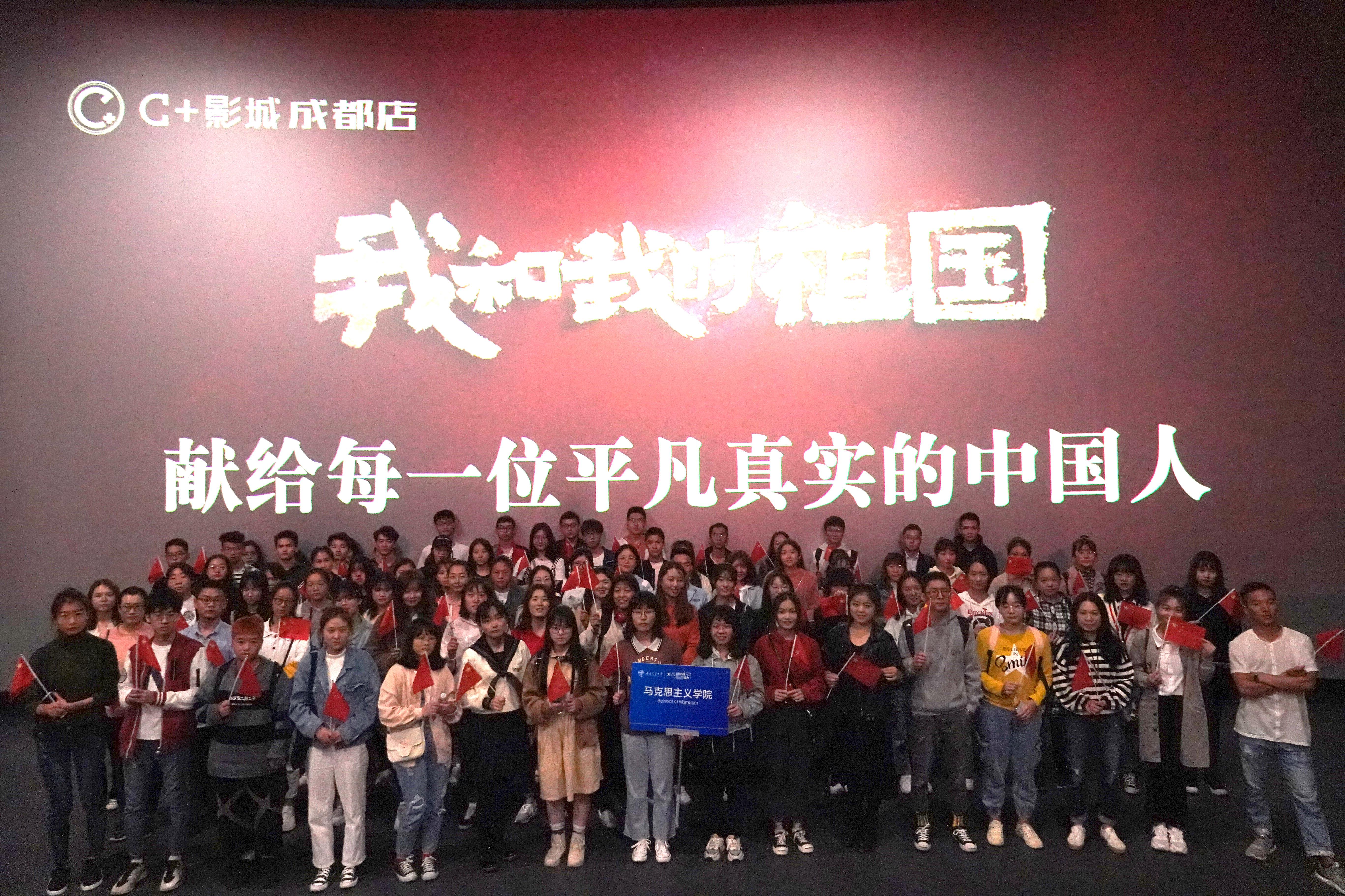 组织部分学生代表于电影院观看了电影《我和我的祖国》,本研同学积极参与其中。