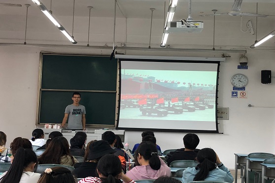团支部书记吴昊结合时事热点,以图片、视频等多种形式展示了中华人民共和国建国70周年阅兵仪式,在回望七十年的峥嵘岁月里又提出了对未来伟大新时代的展望,对思想政治教育专业全体成员提出寄语,引导全体团员“不忘初心,牢记使命,发扬斗争精神,增强斗争本领”用优异的成绩向新中国70周年华诞献礼。活动在热烈的氛围中结束,同学们对新中国建设的热情与使命感得到进一步提升。