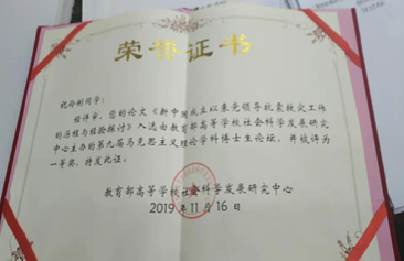2018级博士生祝伶俐同学的论文成功入选并获得一等奖。
