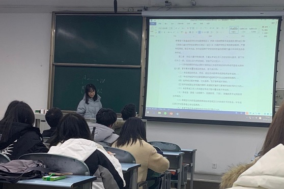 会上杜老师首先提出了有针对性的考试复习建议。希望同学们将复习迎考期间的心态调整到最佳状态,科学合理安排好复习计划,以勤奋踏实的态度对待大学第一次期末考试。其次,本次会议强调了考试的注意事项。对考前的一系列工作安排做了具体说明,并明确了考后离校的相关程序。最后会议对考试纪律进行进一步地强调,由部分同学宣读《瓜子tv