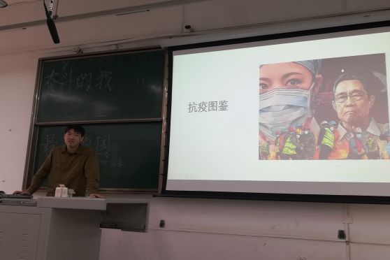 首先由学习委员陈帅锟带领同学们观看了中国抗疫图鉴,感受抗疫过程的艰辛。这样一个不一样的春节,全国上上下下都在为了度过疫情携手奋进。一方有难八方支援,哪里疫情形势严重,我们的物资就源源不断地去向哪里。火神山的中国速度使人震撼,大量的逆行人员令人动容,村村户户自觉抗疫的执行力让人佩服。白衣披甲走上抗疫战场,乡里守望隔离不隔爱。各方的奋斗只是为了有一天我们能摘下口罩拥抱,说一句“好久不见”。