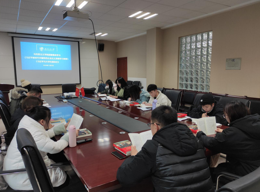 12月3日15:50,瓜子tv 团委在犀浦校区4320集体学习《习近平新时代中国特色社会主义思想学习纲要》《习近平与大学生朋友们》。团委书记赵晨,副书记杜晓林、龚禹竹,学院部分共青团干部参加。