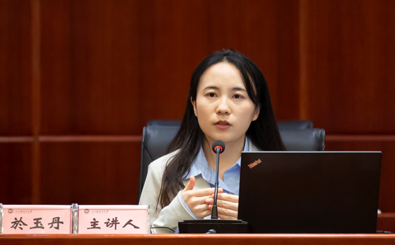 於玉丹博士以《改革开放以来中国共产党的社会文明观(1978-1986)》为题,从调整社会关系、农村改革、城市改革、市场化改革、教育、人口政策、公共秩序七个方面对改革开放以来中国共产党的社会文明观进行了宣讲。她指出,改革开放的历程蕴含的大量社会文明元素,社会文明的进步正是在党的领导下步步推进的。