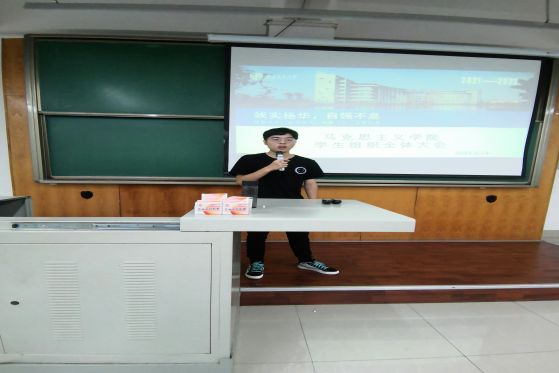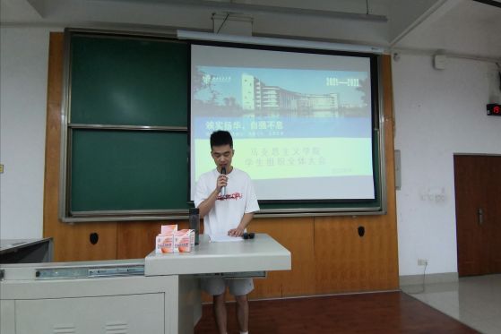 首先,21级辅导员李浩老师在对新成员们表示欢迎后,以其自身经历告诉同学们加入学生组织就是要突破、改变自己,以简单纯粹之心做好工作,同时,所有成员应尽快转变角色和身份,迎接未来学期的工作生活,合作建设马院学生组织。