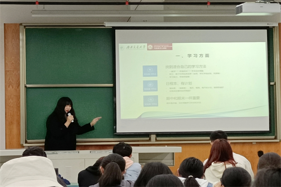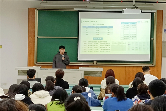 最后,龚禹竹同学侧重讲如何丰富大学生活,怎样成长为一个完整的人。她结合自身大学学习工作经历,从学习、科研、竞赛活动、学生工作、考研五个方面为同学们提供了经验和建议,并对大家表示祝福和期待。