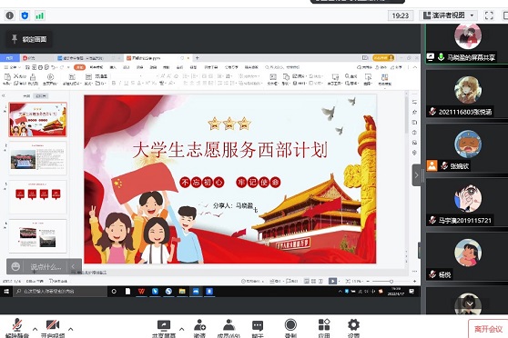 在腾讯会议线上开展了“青马榜样说”第三期考公经验分享活动。本次活动由学生会主席李聪昊主持,2017级本科毕业生马晓盈、田悦两位同学进行经验分享。