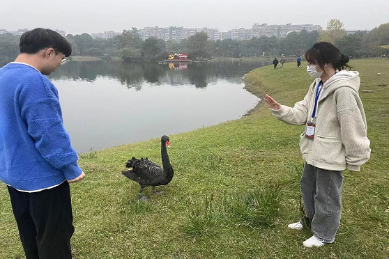 在活动过程中,志愿者们发现部分同学将自己的食物直接投喂给天鹅,并存在靠近天鹅、抚摸天鹅甚至追赶天鹅等行为。需要注意的是,这些行为都存在一定的安全隐患。首先,不适合的食物可能会破坏天鹅的饮食结构,造成肥胖、影响健康,更严重的情况还会引起肠道梗阻,甚至危及它们的生命安全。同时,天鹅有很强的领地意识和警惕性,如果随意靠近,天鹅很有可能会发起攻击,追赶或伤害靠近的人。志愿者们看到此类行为后,对路人进行了及时的劝阻,并向他们进行了相应的科普和宣传。