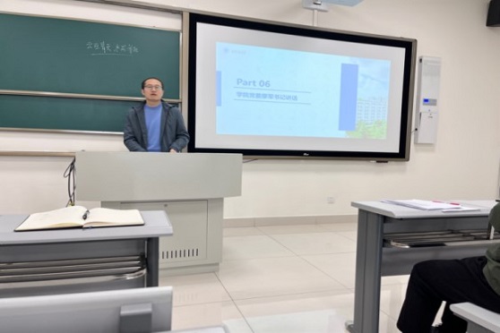 2022级本科生开学第一课——“青春践行二十大”学风建设主题班会于3月17日10:00在X30610召开,学院党委书记廖军出席班会,并给同学们进行了指导讲话。2022级班导师李鑫诚、辅导员杜晓林也参加了本次班会,班会由杜晓林主持。