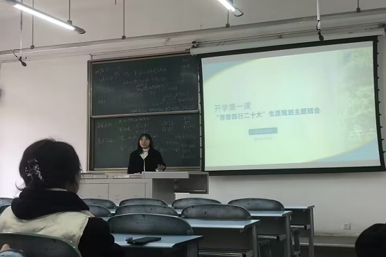 各年级围绕升学就业、班风学风、生涯规划等主题,积极开展“青春践行二十大”系列主题班会,同时学院领导、班导师、辅导员深入班会。