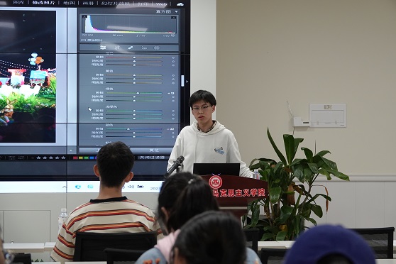最后,他向同学们介绍了拍摄后期的修图技巧,并现场演示了使用LR调色批量处理和PS常用功能后期修图的步骤。