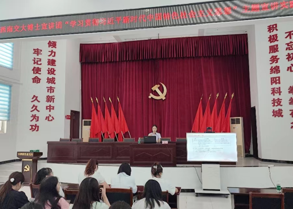 博士宣讲团团长冷书恒以“正确理解四川现代化建设的基本内涵”为主题,于7月18日为乐山市市中区人民政府办公室、机关党委工作人员开展宣讲;于7月20日为绵阳市安州区雎水镇、秀水镇乡村干部开展宣讲。他从经济高质量发展、融入新发展格局、多民族共同富裕、文化自信自强、人与自然和谐共生等多个方面讲述了四川现代化建设历程。
