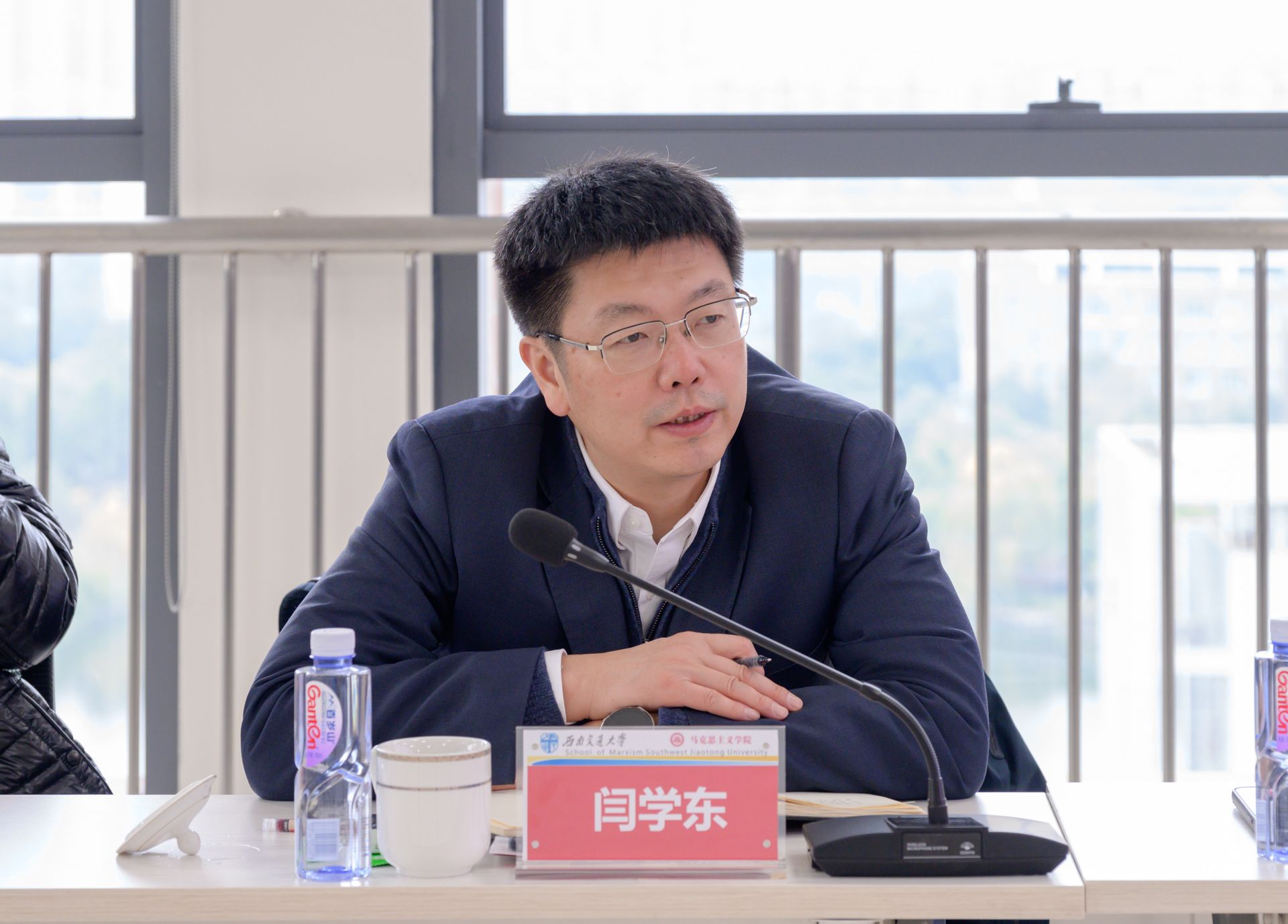 在推进课程思政建设方面发挥重要作用,在深挖本行业思政资源方面多下功夫,在对外传播、人工智能与马克思主义理论交叉研究、习近平新时代中国特色社会主义思想“三进”、基地建设等方面继续努力。他表示,学校将一如既往重视、支持并帮助学院的发展与进步,并鼓励学院全体师生团结一致、凝心聚力,努力创造一流成就。