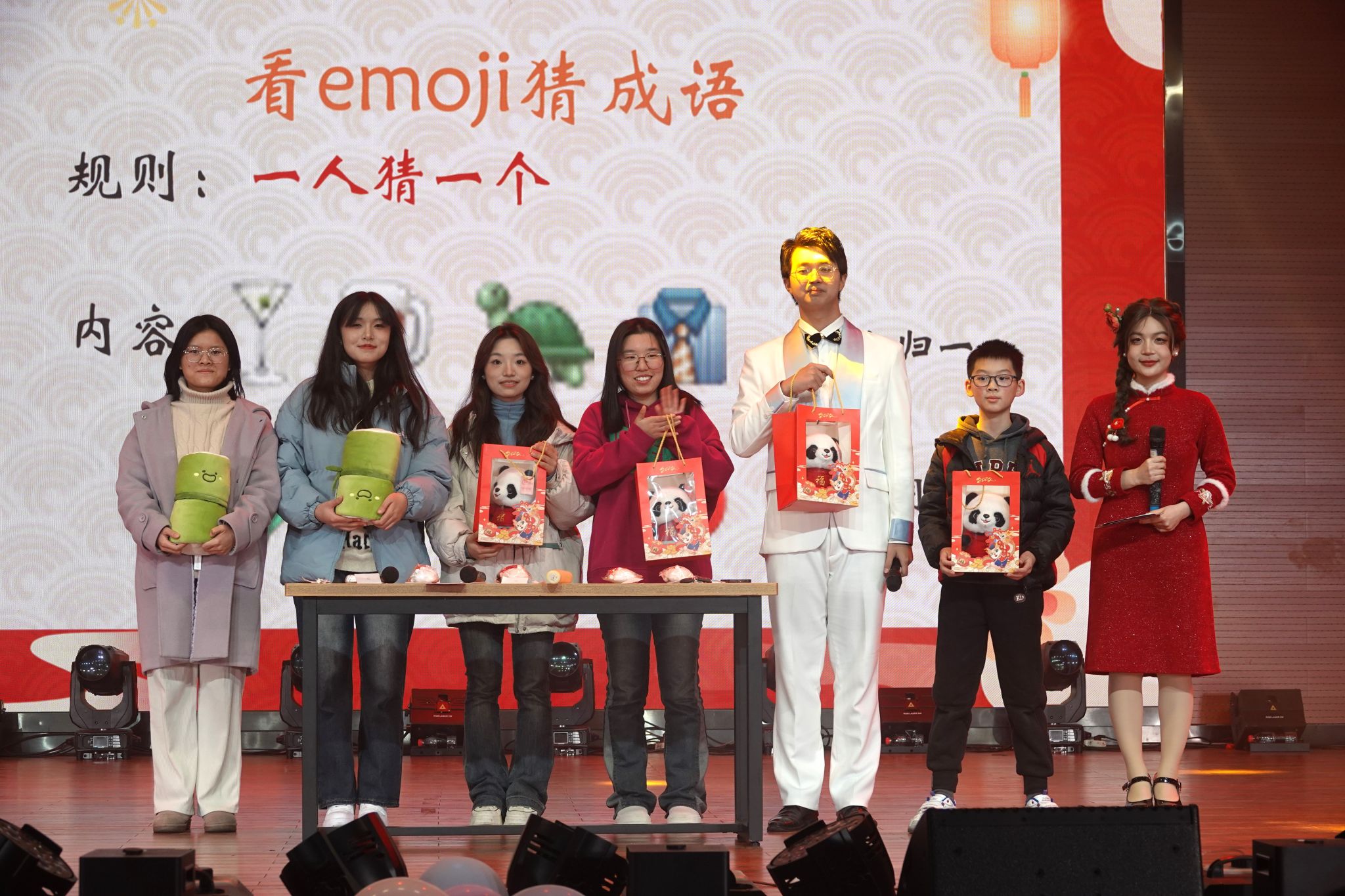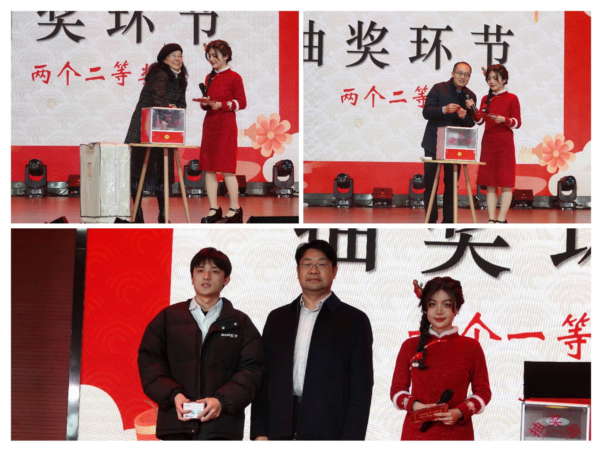 时光如织,夜幕降临,在晚会的三个篇章中穿插进行了游戏和抽奖环节,欢乐的气息笼罩全场。校团委书记武俊,学院党委书记廖军,执行院长田永秀,副院长胡子祥、李学勇、谢瑜分别上台抽取幸运观众并亲手送上奖品,将新年的第一份惊喜带给现场的同学们。不论是紧张刺激的抽奖,还是趣味十足的互动游戏,观众都热情十足,全心投入。欢笑声与掌声不断将晚会的氛围推向高潮,映衬出马院师生在晚会中共度时光的欢乐与真挚情感。