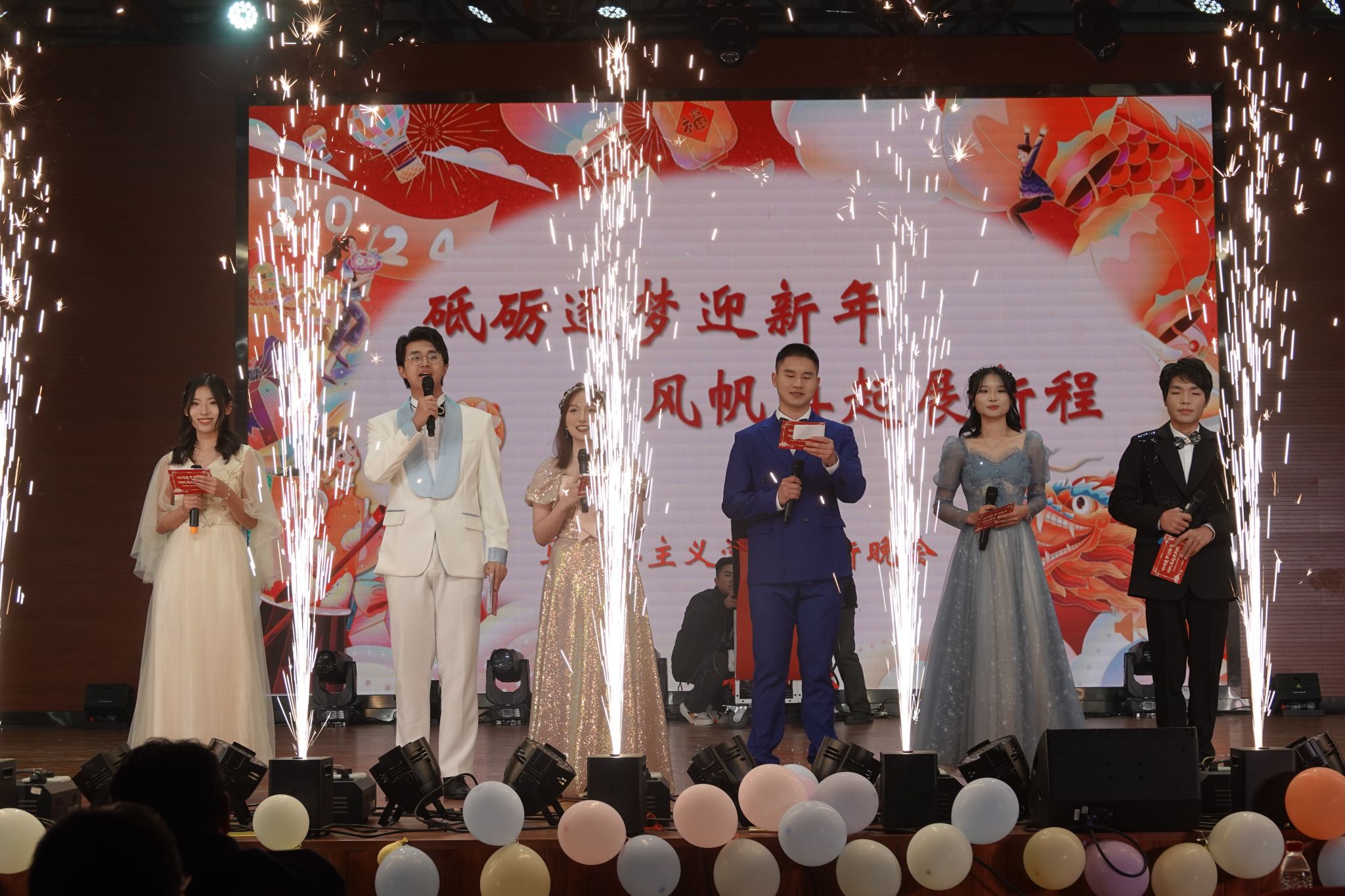 “砥砺逐梦迎新年 风帆再起展新程”主题迎新晚会在犀浦校区一食堂三楼大学生活动中心顺利举行。学院党委书记廖军、执行院长田永秀,校团委书记武俊,党委学生工作部副部长邢晓鹏等领导出席本次晚会,与学院师生欢聚一堂,一起在欢声笑语中共同回首2023年,喜迎2024年。