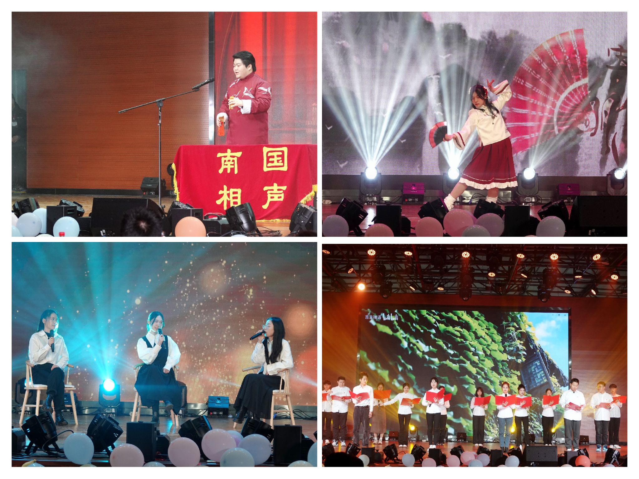 在“第二篇章:观今朝——新象启明时”中,马院师生倾情助阵,用精彩的演出将欢乐的气氛推向高峰。相声社的同学舌灿莲花,用相声《单刀会》开启一场欢笑盛宴,以绘声绘色的演出带观众领略中华传统文化之美。蒋成欣同学带来优美的舞蹈《寄明月》,为观众织就明月皎皎、月华如练、遥寄相思的美妙场景。蔡晴、徐娅楠、潘晓瞳三位老师倾情献唱歌曲《外面的世界》,用悠扬的曲调传递出千帆过尽后,归来仍是心怀诗与远方的少年心境。刘柯吟、林小琴等同学厚植家国情怀,以饱满的热情来带集体朗诵《诗意中国》,用慷慨激昂的语调吟诵出对神州大地的热爱与赞扬。