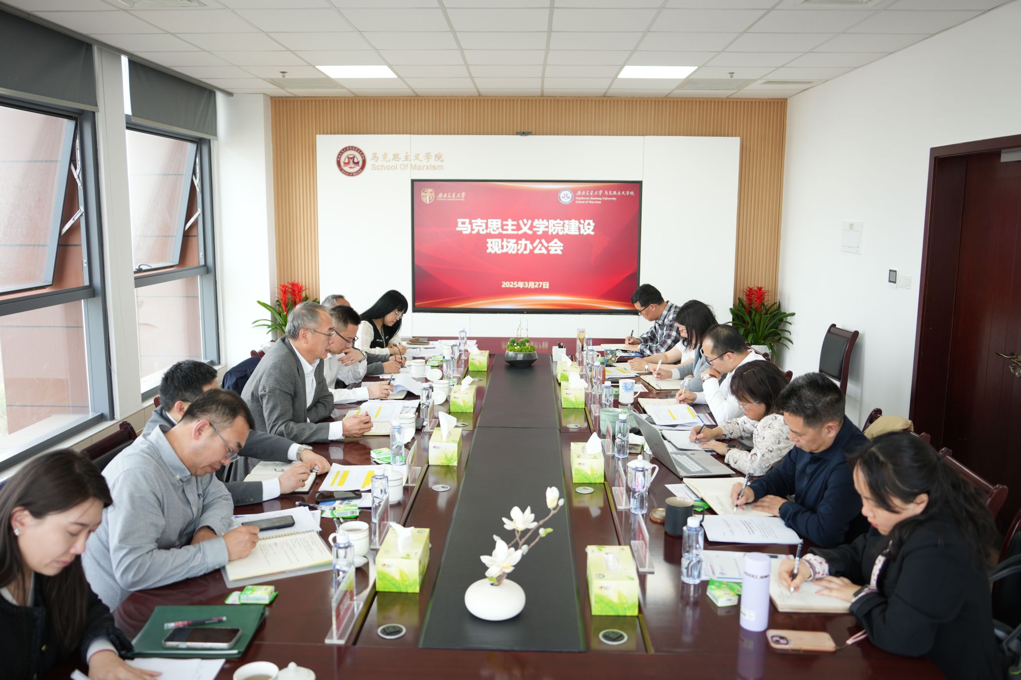 党委办公室、党委组织部、党委宣传部、人力资源部、文科发展建设处、发展规划与学科建设处等单位负责同志,学院领导班子全体成员参加会议。