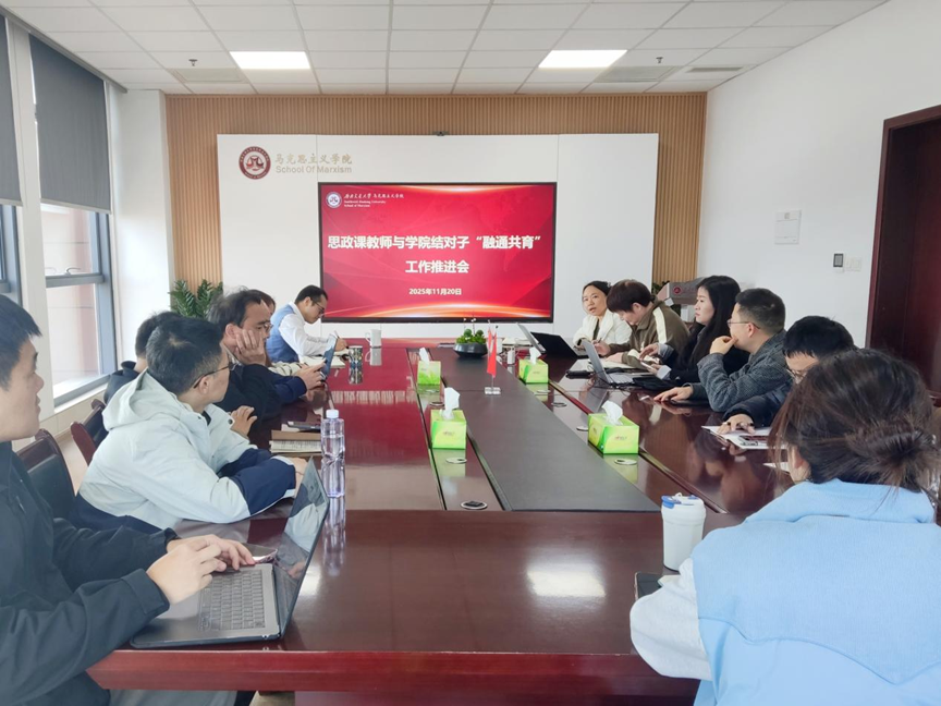 为深入贯彻习近平总书记关于思政课建设的重要指示精神,构建协同育人机制,11月20日下午,马克思主义学院召开思政课教师与学院结对子“融通共育”工作推进会。学院党委书记廖军、副院长谢瑜及学院思政课教师参会,副院长王菁主持会议。