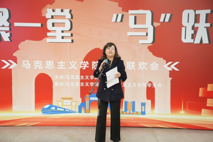 傍晚时分,联欢会在热烈氛围中正式拉开帷幕。学院院长田永秀深情致辞,盘点马院师生2025年的奋斗历程和收获,表达了对师生的殷切期许和对学院发展的祝愿,为晚会注入满满能量。