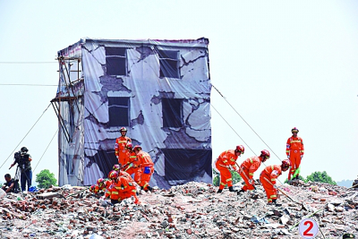 图为四川举行防震救灾综合演练现场,救援人员在进行搜救演练。新华社发