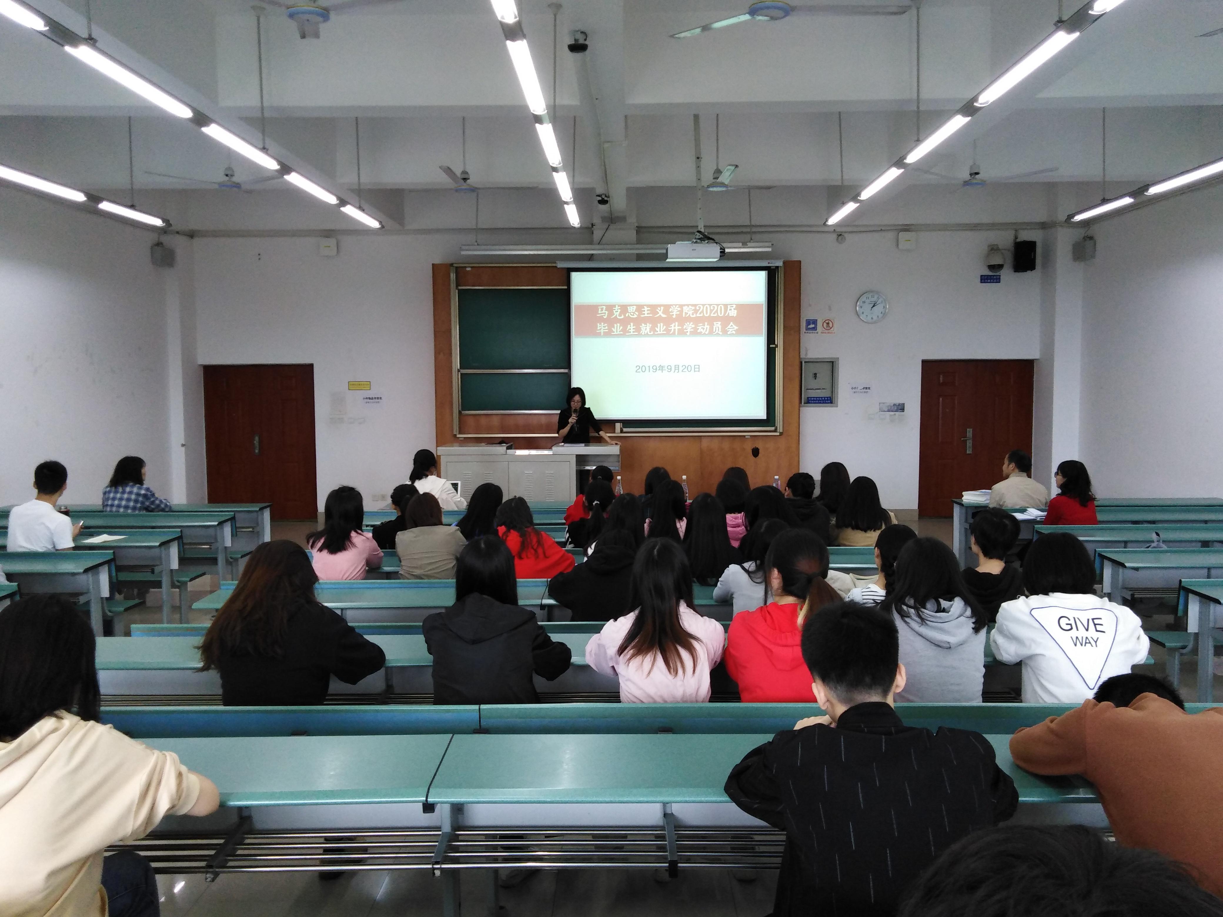 2020届毕业生就业升学动员会在X4357教室顺利开展。参与此次讲座的老师有学院党委副书记熊钰、班导师刘晓玲老师、辅导员赵晨老师、辅导员杜晓林老师以及张攀律师。本次动员大会由赵晨老师主持。