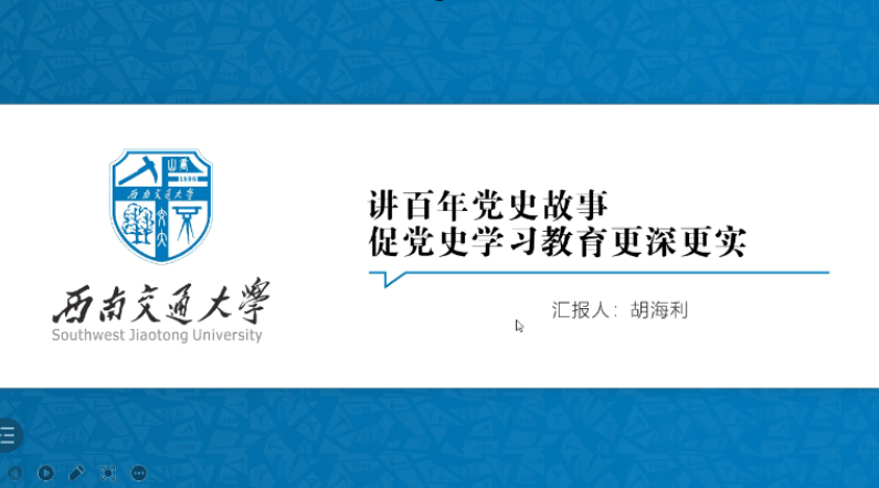 西南交大博士宣讲团优秀宣讲员胡海利在宣讲会上分享了作为四川省党史宣讲团成员、“蓉耀青年”成都大学生新思想宣讲团成员前往各地进行党史学习教育宣讲的经验。她的宣讲讲求方法分析,有针对性、注重具体问题具体分析。她表示要坚持努力夯实专业基础,不断提升自身素养,向时代新人目标奋进!