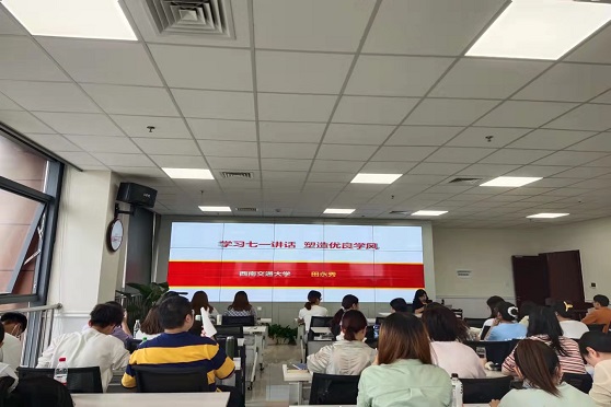 田永秀教授在X31325报告厅举办了 “学习七一重要讲话精神,塑造优良学风”主题讲座,2021级全体硕博研究生和2020级部分同学参与了本次讲座。