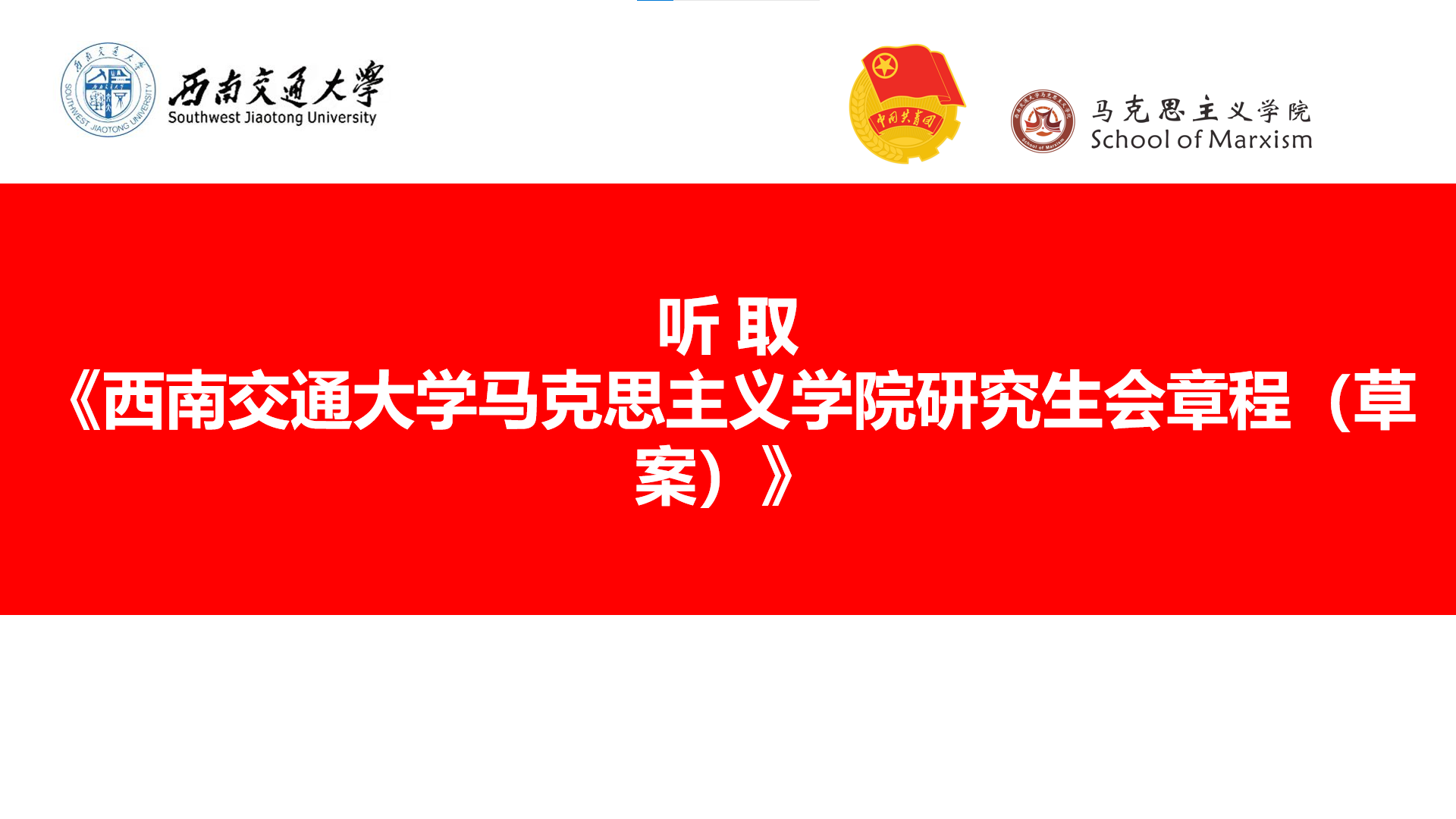 研究生会章程(草案)》的编制情况说明。在分团讨论中,各代表团对大会工作报告、提案工作报告、学院学生会(研究生会)章程编制情况等进行了充分深入的讨论,并集体学习了本次大会的精神要领。
