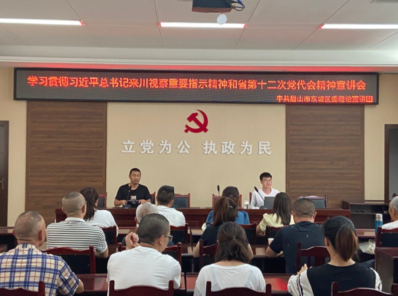 博士宣讲团成员胡海利、冷书恒、王潇毅,先后赴眉山市东坡区乡镇、社区,为近600名来自各乡镇、社区的基层干部、党员群众宣讲习近平总书记来川视察重要指示精神和省第十二次党代会精神。