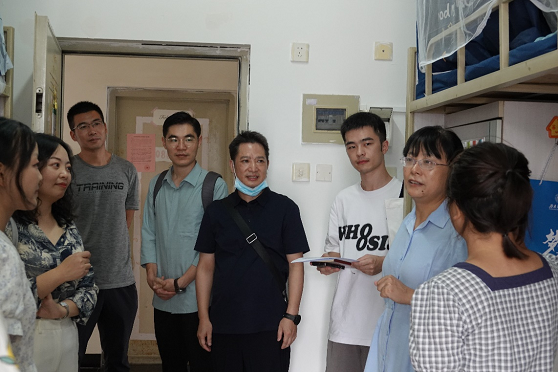 党委书记廖军、执行院长田永秀等领导于9月1日16:30开展了2022级本研新生走访慰问工作,了解学生们疫情防护、入学适应等情况,关心学生日常生活用品是否充足,学习生活是否有困难等。
