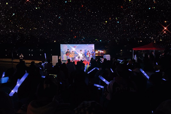 十月末的成都夜晚虽秋意已暮,遍地霜华,但美好正当时。在掌声和欢呼声中,凌晨羽毛乐队的暖场表演奏响了星空下的浪漫乐章,开启了这场音乐盛宴。观众的荧光棒随着歌声、乐声挥舞闪烁,为草坪夜色添上了一抹亮彩。