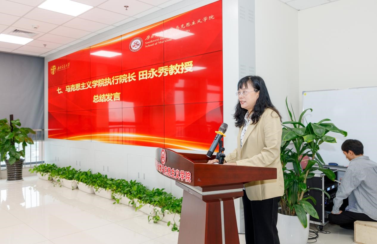 执行院长田永秀教授作了总结发言。田院长在总结发言中对长期关注和支持《中国精神》课程的领导、老师和同学表达了感谢,并对微视频大赛获奖团队表示了祝贺。田院长回顾了《中国精神》课程已经取得的成就,她表示,课程将继续致力于弘扬中国精神,引导学生将中国精神播种在广阔的大地上。