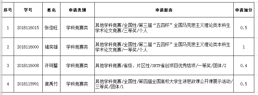 根据学生提交加分申请情况,需参加答辩学生名单如下: