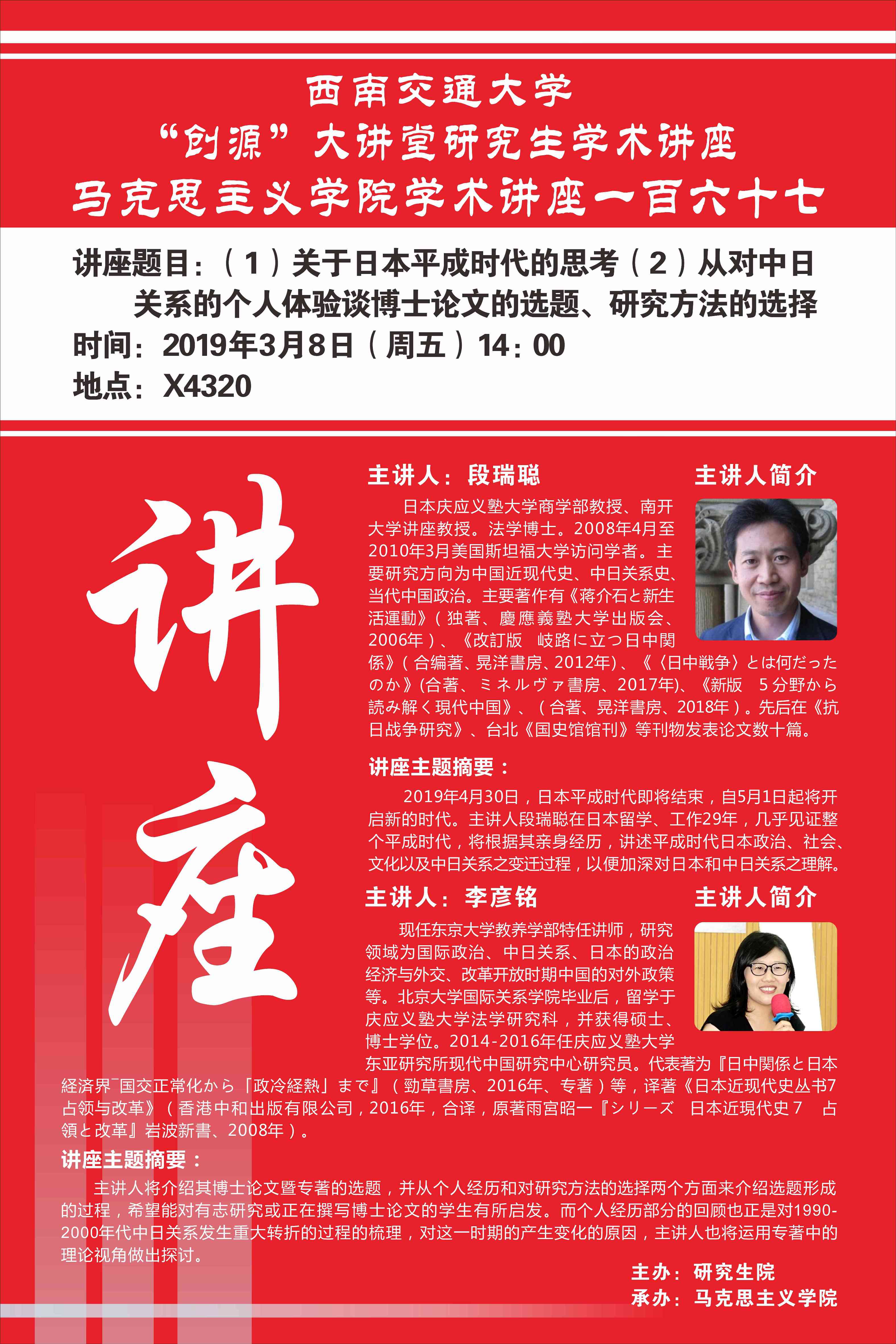 1、关于日本平成时代的思考 2、从对中日关系的个人体验谈博士论文的选题、研究方法的选择