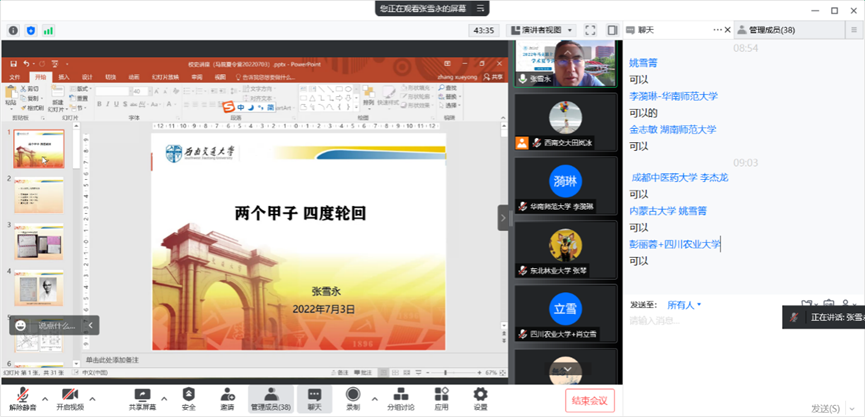 At 9 a.m., the opening ceremony was officially held on Tencent Meeting platform. First of all, Xie Yu, Associate Dean of the School of Marxism, presided over the opening ceremony. She welcomed campers from universities around the country, and hoped that all campers could cherish the opportunity of this Academic Summer Camp to communicate actively with teachers, abide by relevant regulations, and fully show themselves in this summer camp.