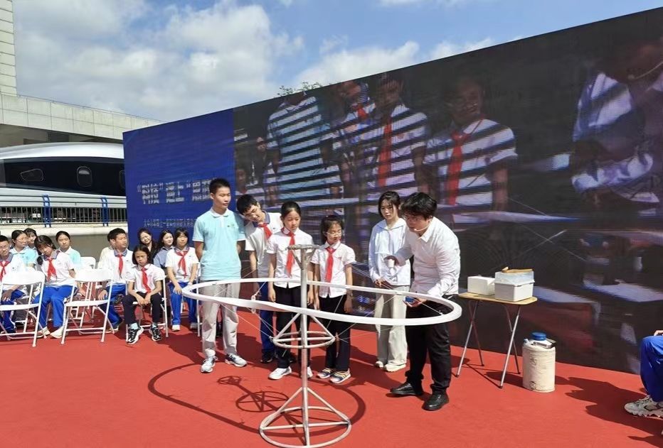 活动现场,来自轨道交通运载系统全国重点实验室青年科学家王理进行了高温超导磁悬浮技术实验演示,并让大中小学生切身体验、参与实验,深入感受科技创新的力量。来自成都实验小学、成都七中八一学校、瓜子tv