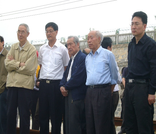 沈志云(右二)在京沪高铁验收组考察线路工程